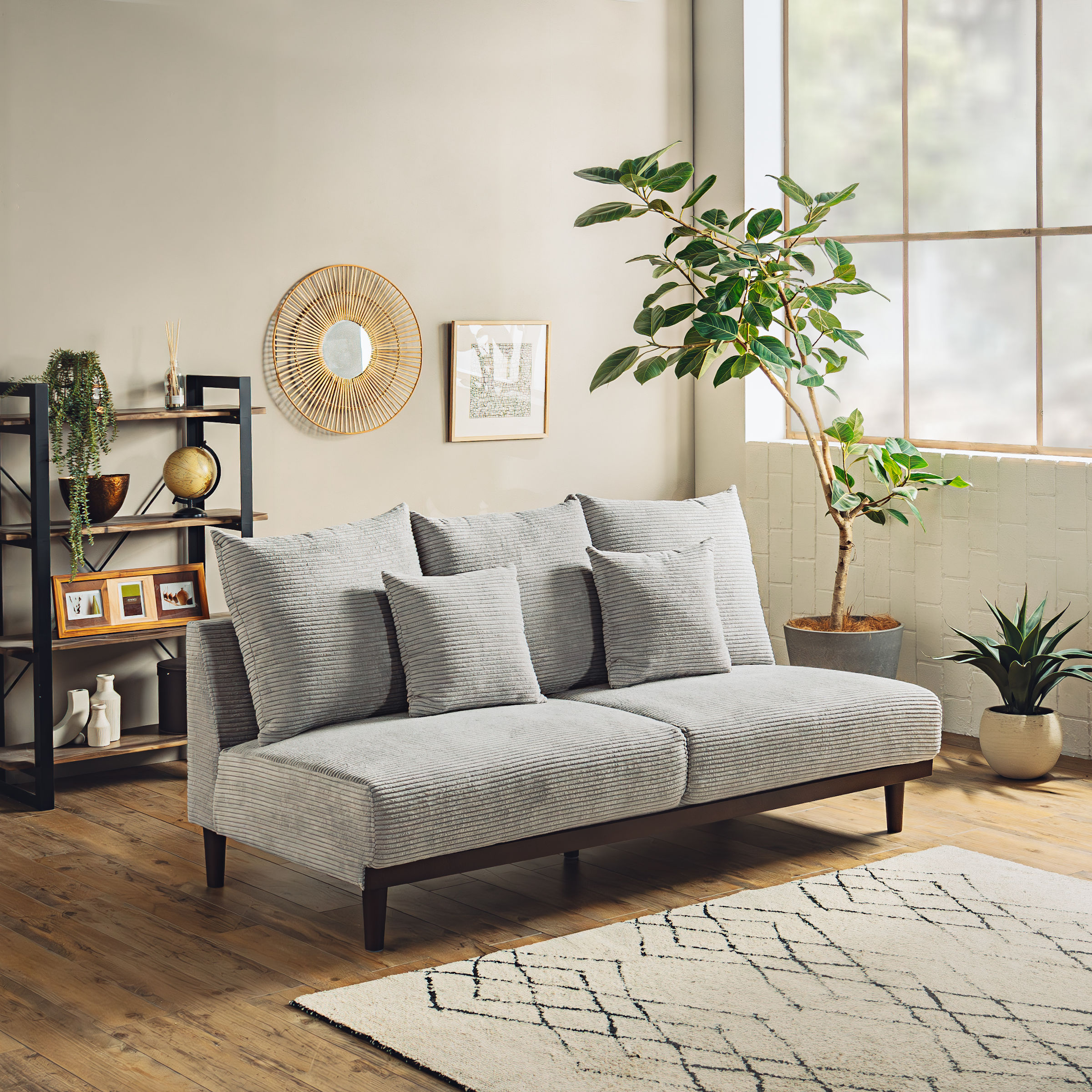 肘掛けのないフォルムで自由なくつろぎ空間をデザインします。